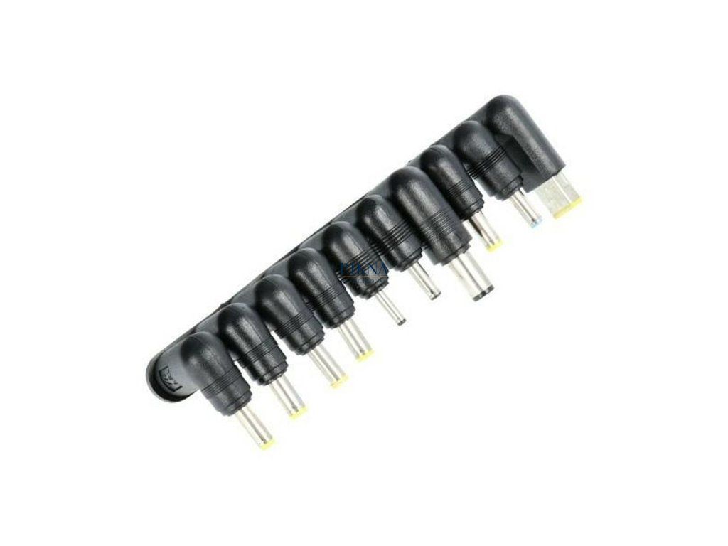 90 W AC adaptér je vybavený 10 typmi koncoviek, vďaka ktorým ho možno prispôsobiť viacerým modelom notebookov.