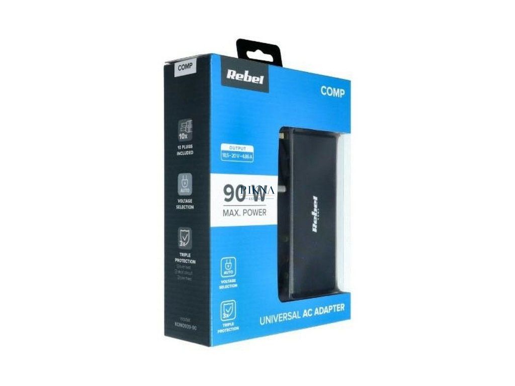 Univerzálny napájací adaptér REBEL s 10 koncovkami, 90 W. Vhodný pre väčšinu populárnych modelov notebookov.